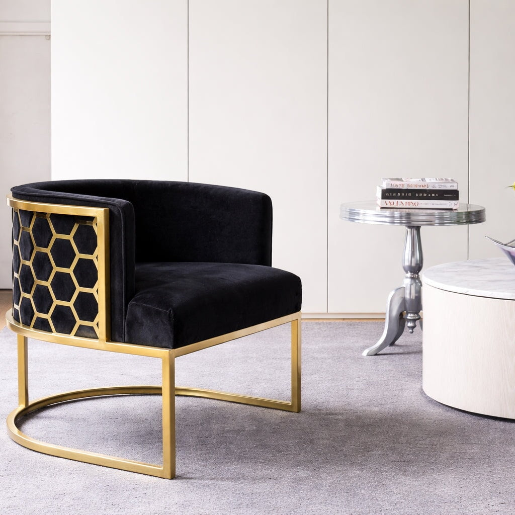 Bernia Lounge Chair In Black Velvet Seat Brushed Gold