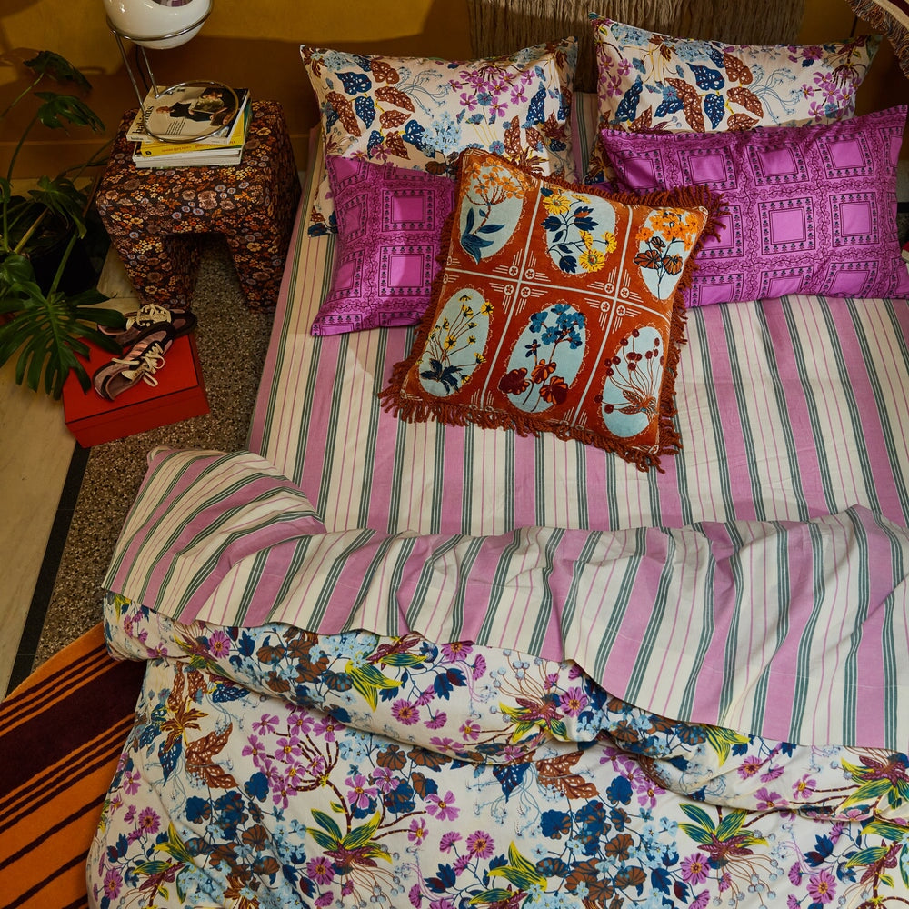 Pecan Pie Stripe Velvet Rectangle Cushion