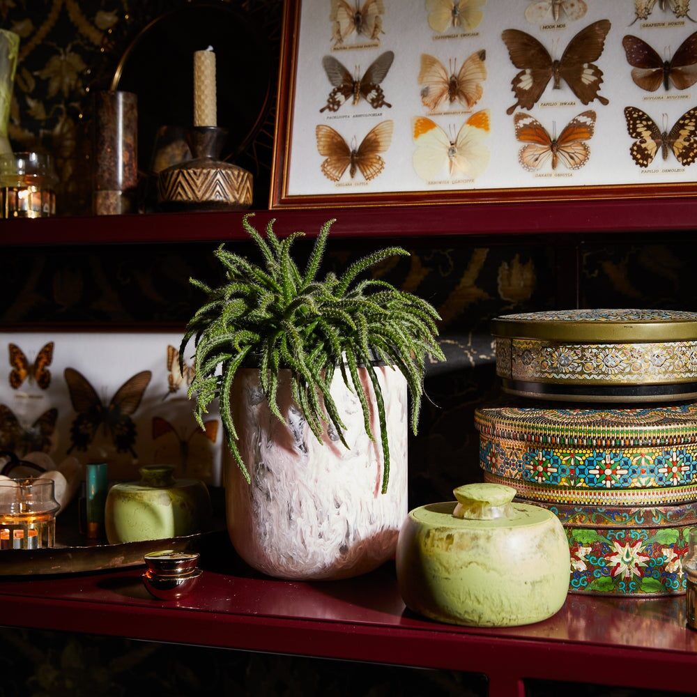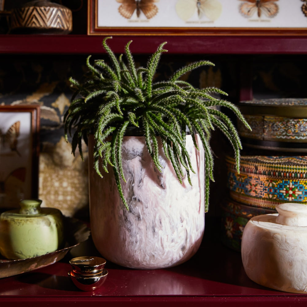 Add an extra splash of colour to your floral arrangements with our Amisha Vase. Each piece is poured and swirled by hand, delivering that coveted one-of-a-kind feel. The clever, multipurpose design doubles as a vase or plant holder.