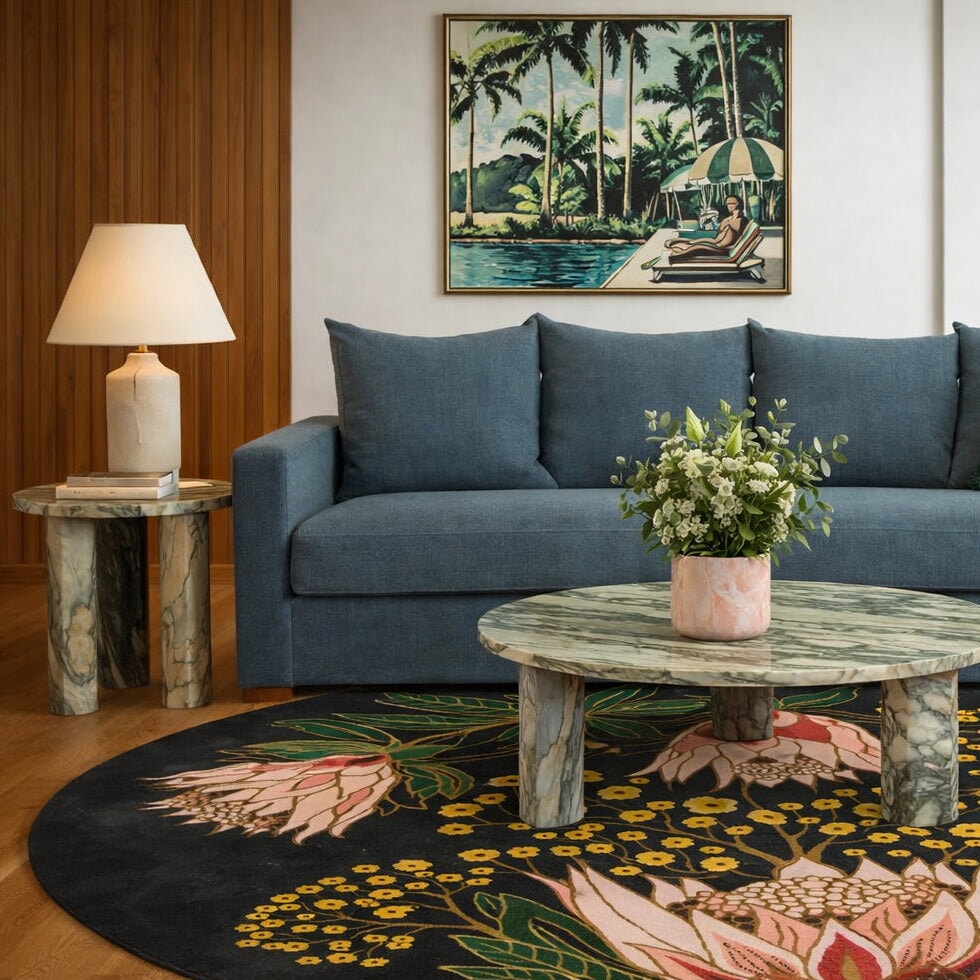 Marble & Stone are naturally porous. Wipe all spills immediately. Use coasters, placemats and trivets to protect marble & stone from heat, stains and abrasive objects. Avoid contact with acidic liquids to prevent etching or discolouration. Marble & Stone are natural materials, no two pieces are the same.