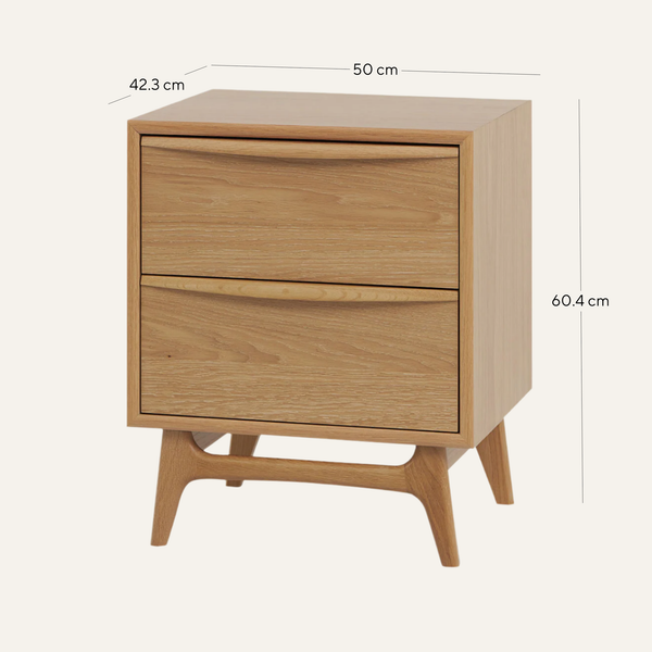 Brendon 2 Drawer Bedside Table - Natural Oak