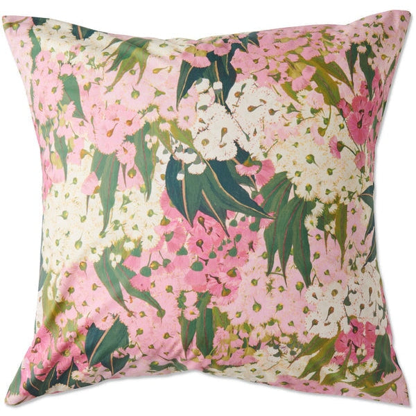 The Bush Blossom Organic Cotton European Pillowcases are a luxurious complement to your bedding ensemble, featuring the enchanting allure of native Australian gum blossoms. Made from premium 100% GOTS certified organic cotton, these Euros are a beautiful statement to perch atop your bed, soft and sumptuous, inviting you to sink into ultimate comfort every night. The stunning floral print, showcasing delicate shades of pink, cream, and white gum blooms intertwined with lush gum leaves, brings a touch of natural elegance to your bedroom decor.