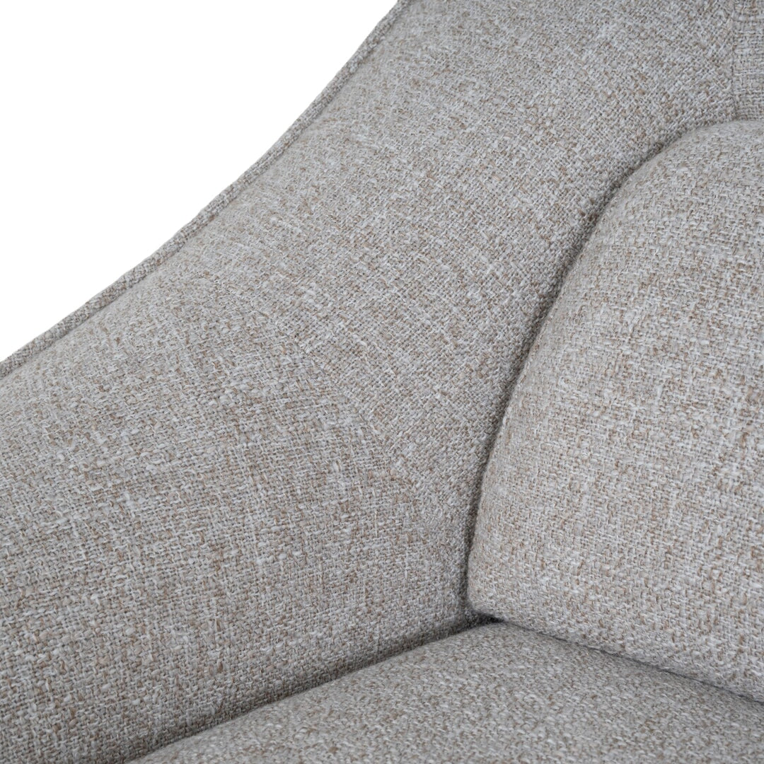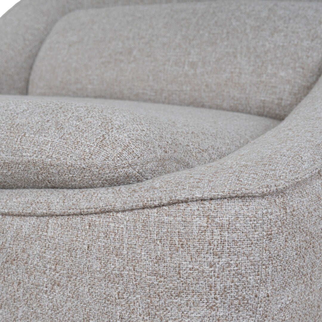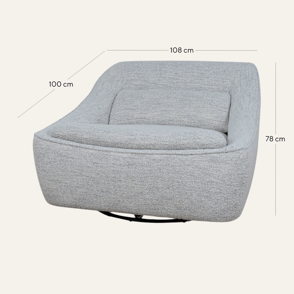 - Rounded silhouette with softly sloped armrests and backrest