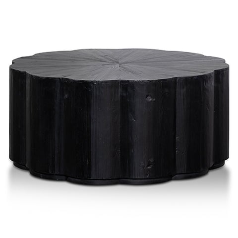 Enhance your living area with the striking charm of a round black coffee table. Its sleek design and deep black finish create a perfect balance of contemporary style and timeless elegance, making it a standout addition to your decor.