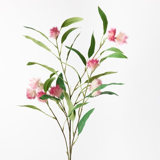 Offering enduring beauty with minimal maintenance this eucalyptus lemon scented stem will breathe new life-like beauty into your home. This gorgeous faux eucalyptus stem looks amazingly real with its detailed pink flowers. Create a one of a kind artificial arrangement mixing with other stems or place in a decorative vase on its own for an instant lift. For longer lasting flower stems keep out of direct sunlight.