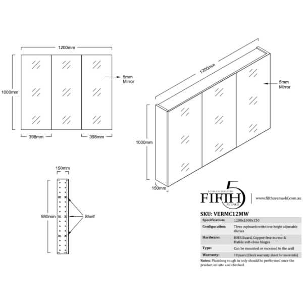 FABF Verona Pencil Edge Mirrored Shaving Cabinet 1200mm x 1000mm