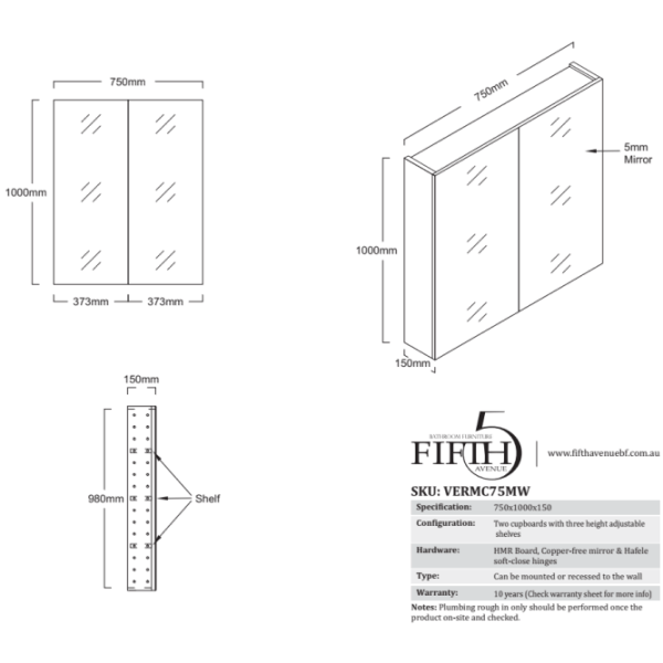 FABF Verona Pencil Edge Mirrored Shaving Cabinet 750mm x 1000mm