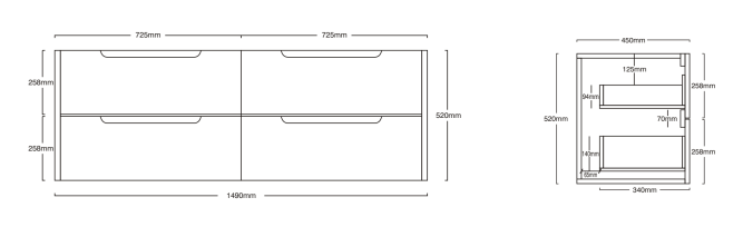 The internals of the vanity drawers are finished with a matte black look with no plumbing cutout. We provide plumbing traps for your ease so that you can put the basin anywhere, without any restrictions. The drawer runners are Austrian made GRASS Dynapro which are considered to be the best in the world, offering a smooth glide function, a soft-close and 4D adjustment.