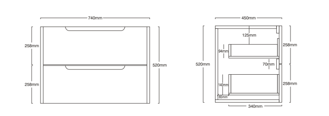 The internals of the vanity drawers are finished with a matte black look with no plumbing cutout. We provide plumbing traps for your ease so that you can put the basin anywhere, without any restrictions. The drawer runners are Austrian made GRASS Dynapro which are considered to be the best in the world, offering a smooth glide function, a soft-close and 4D adjustment.