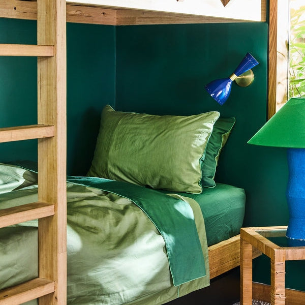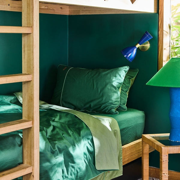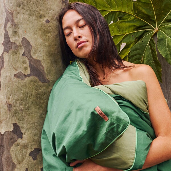emanating a sense of balance, growth, and tranquillity. Like a walk through lush forests, this hue invites rejuvenation, relaxation, and a return to nature. Crafted from a soft, breathable bamboo cotton blend, this double-sided, two-toned quilt cover is designed to cocoon you in comfort while promoting peaceful, restorative sleep. Rest, renew, and wake up refreshed.