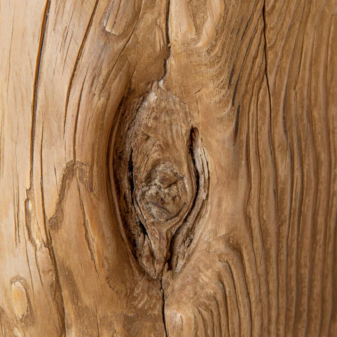 Note: This product is handcrafted from reclaimed elm timber, giving each piece its own natural character and charm. Each tabletop is uniquely finished and will display distinctive features such as cracks, splits, timber fillings, and surface variations that highlight the wood’s raw, rustic origin.