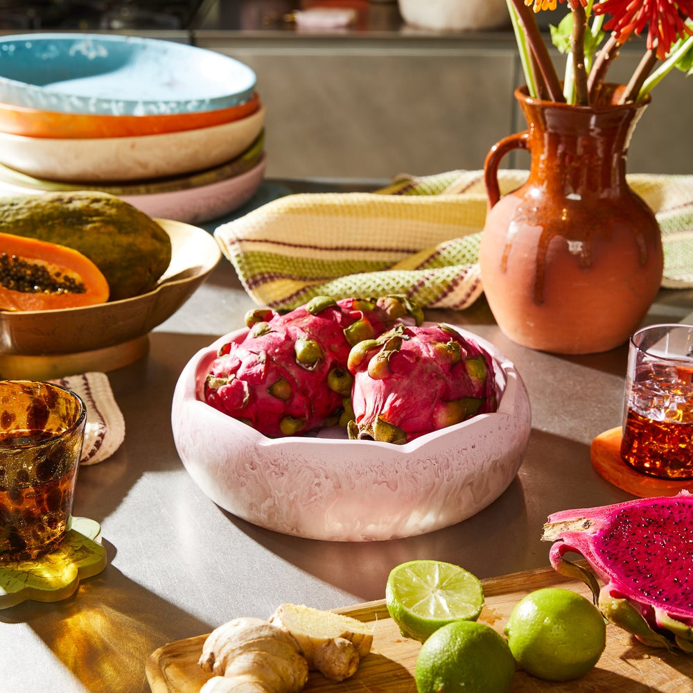 The ultimate salad bowl, our Kabrina Bowl is the perfect size for dishing up fresh salads. Each piece is poured and swirled by hand, delivering that coveted one-of-a-kind feel.