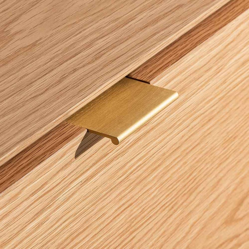 - 2x drawers with hidden handles and 1x flip-down drawer-front
