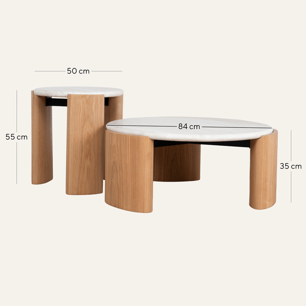 Marbela Nested Carrara Marble Coffee Table - Natural