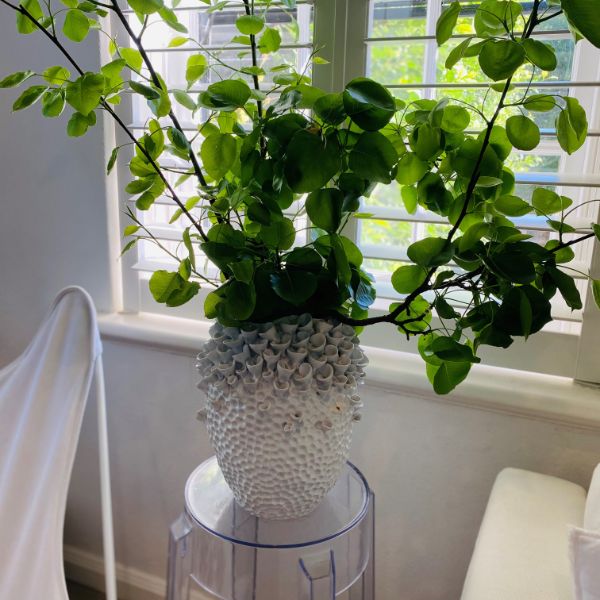 Hand-made & hand-glazed ceramic. May not be 100% watertight so using a glass or plastic insert or vase inside recommended. Variations in colour, small cracks and imperfections may occur.