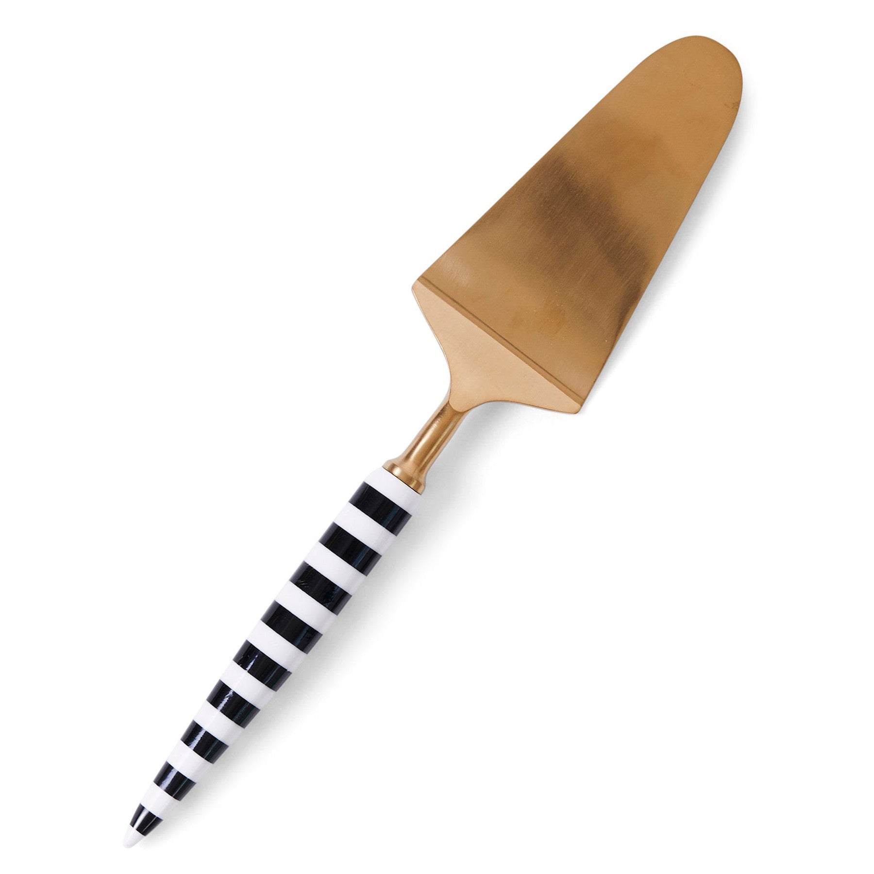 - Beautifully crafted resin handle cake server with brass coated stainless steel head.