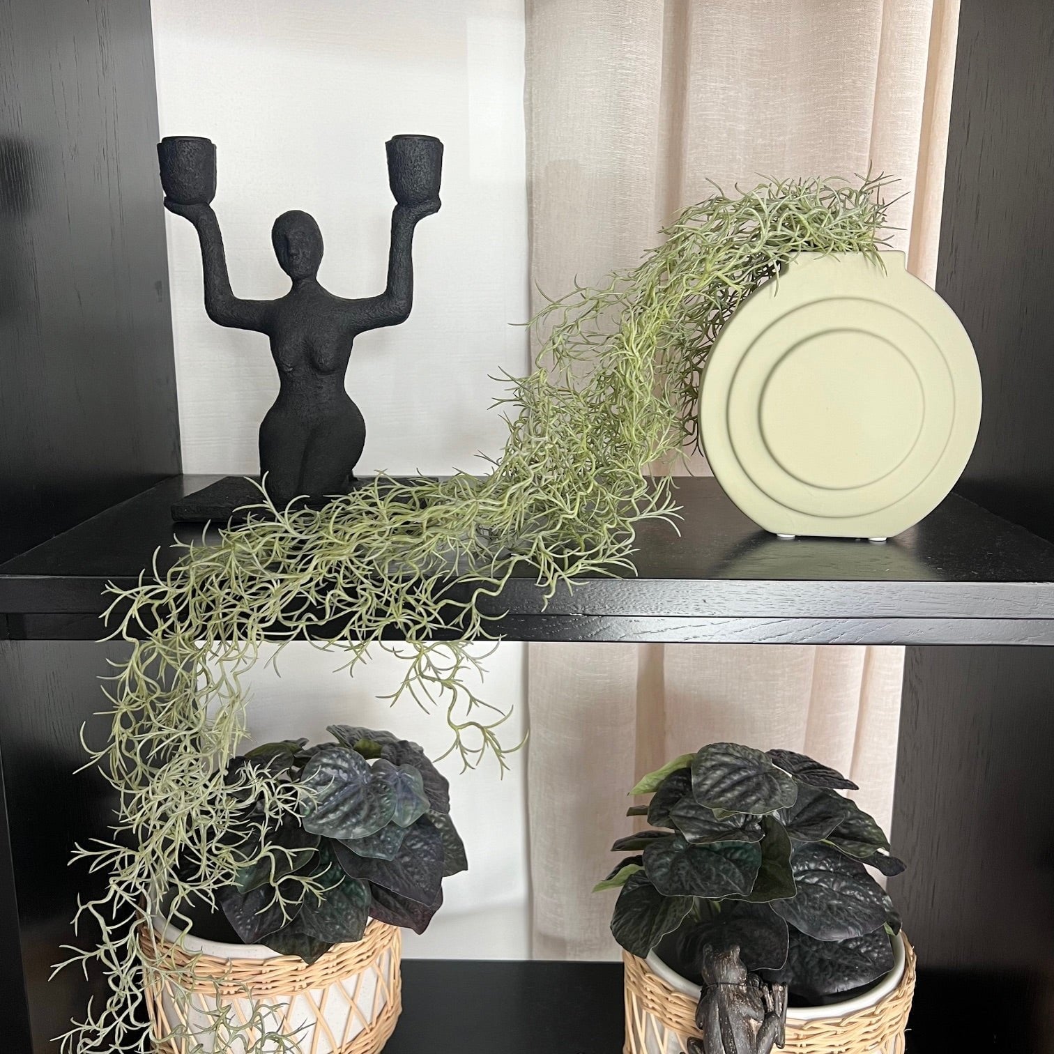 Finely detailed this artificial moss spanish hanging bush is amazingly realistic. With minimal maintenance this faux moss spanish haning bush can offer enduring beauty and bring warmth and vibrancy to your home or interior space. Easily style this moss spanish hanging bush with other plants and bushes from our extensive range of artificial greenery to create your very own indoor oasis. Be sure to keep out of direct sunlight.