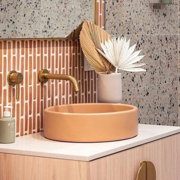 Nood Co Bowl Round Concrete Basin - Pastel Peach