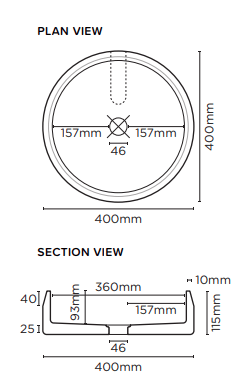 The Prism Circle Basins measure 580mm x 380mm and are 115mm high.