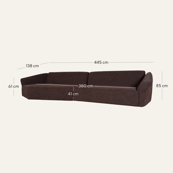 - Seat: 380cm (W) x 112cm (D) x 41cm (H)