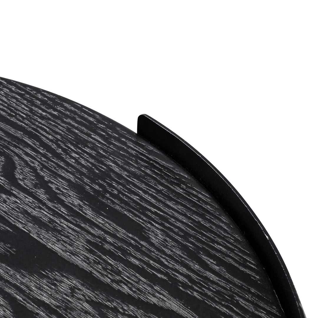 - Timber veneer construction in a matte black finish