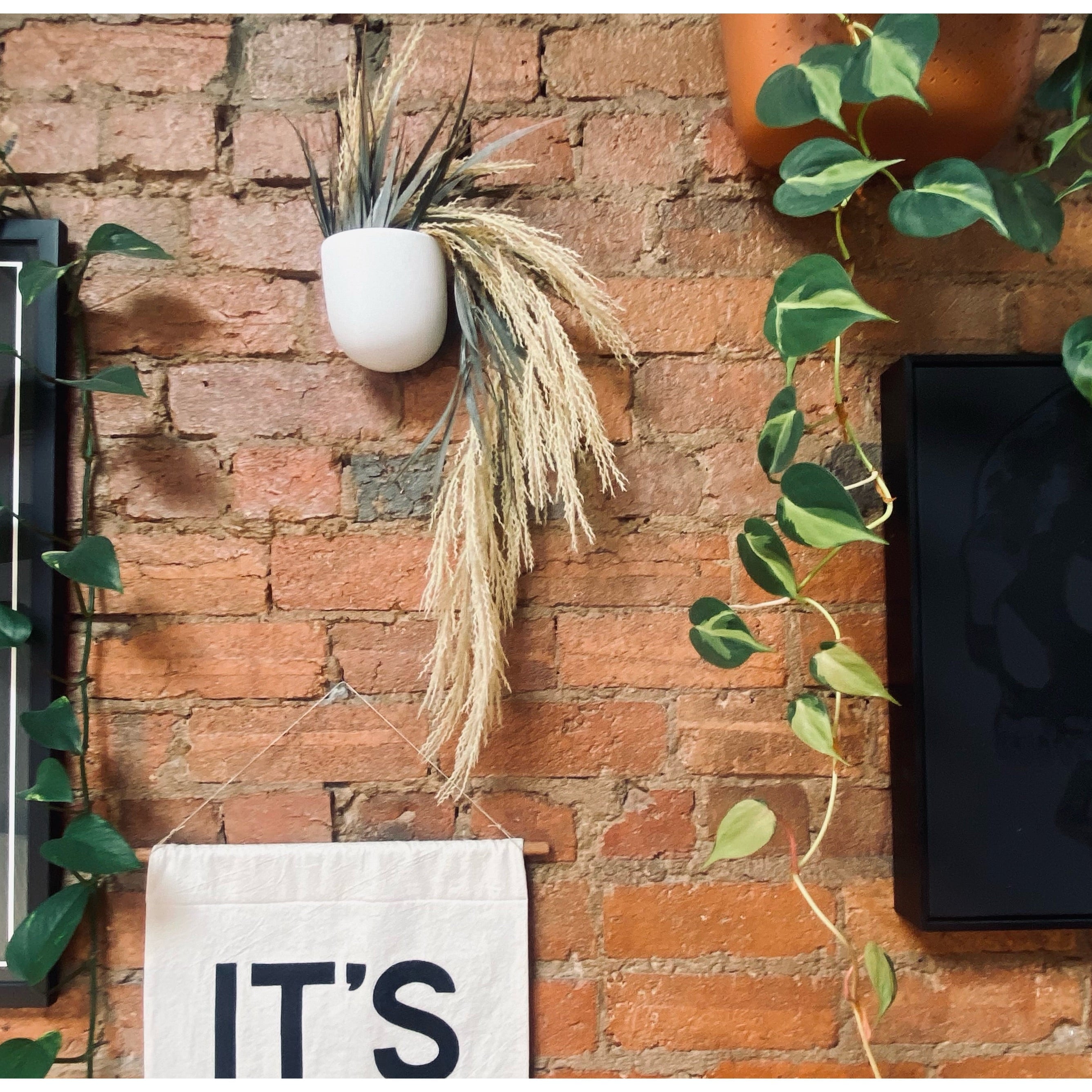 Bring a dash of colour to your interior space with this gorgeous faux plume grass hanging bush. Easily maintained this beautiful artificial hanging bush will bring lasting beauty into your home or interior space. Create a one of a kind artificial arrangement mixing this plume grass hanging bush with other stems or place in a decorative vase on its own. For longer lasting faux flower stems keep out of direct sunlight.