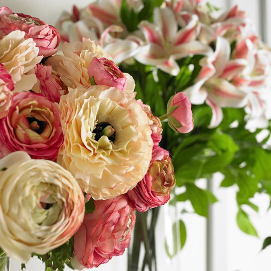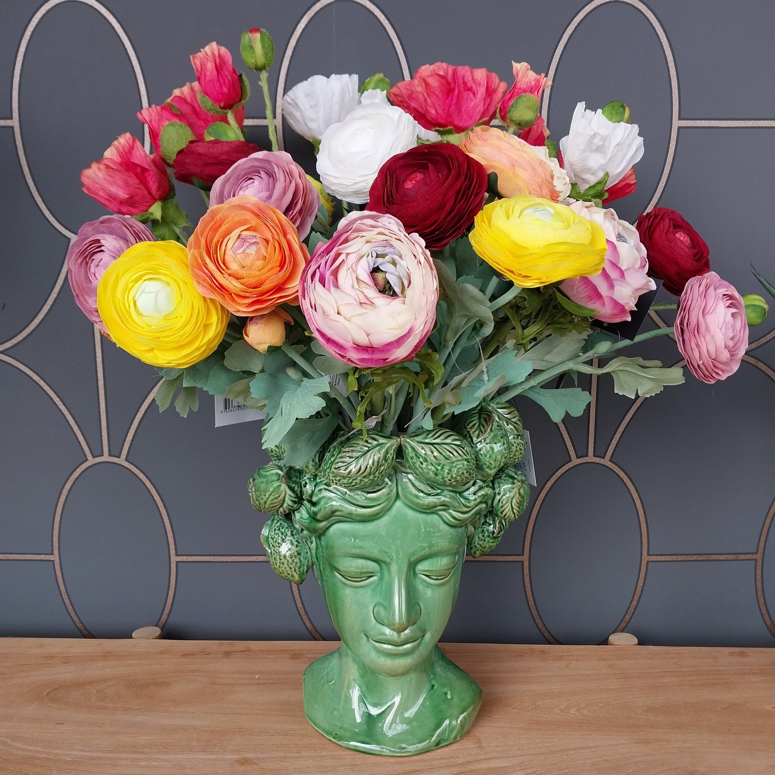 Brighten up your interior space with this stunning faux ranunculus, unbelievably realistic with their fresh touch you wouldn’t even think they’re faux! Style this artificial ranunculus simply in a beautiful bunch on their own or create an arrangement from VAVOOM's huge variety of artificial flowers. Being artificial, this ranunculus is easy to care for and style in your interior space. Keep out of direct sunlight for long lasting beauty.