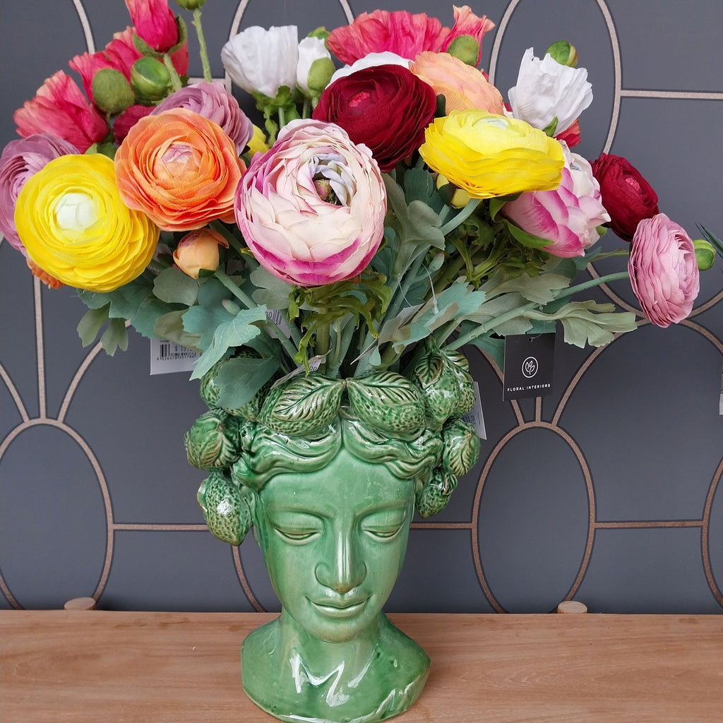 Brighten up your interior space with this stunning faux ranunculus, unbelievably realistic with their fresh touch you wouldn’t even think they’re faux! Style this artificial ranunculus simply in a beautiful bunch on their own or create an arrangement from VAVOOM's huge variety of artificial flowers. Being artificial, this ranunculus is easy to care for and style in your interior space. Keep out of direct sunlight for long lasting beauty.