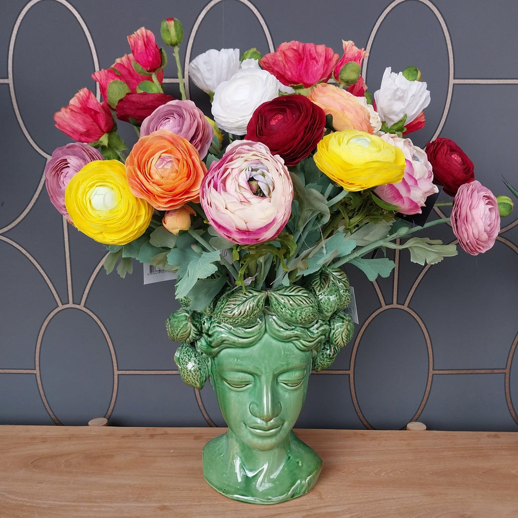 Brighten up your interior space with this stunning faux ranunculus, unbelievably realistic with their fresh touch you wouldn’t even think they’re faux! Style this artificial ranunculus simply in a beautiful bunch on their own or create an arrangement from VAVOOM's huge variety of artificial flowers. Being artificial, this ranunculus is easy to care for and style in your interior space. Keep out of direct sunlight for long lasting beauty.