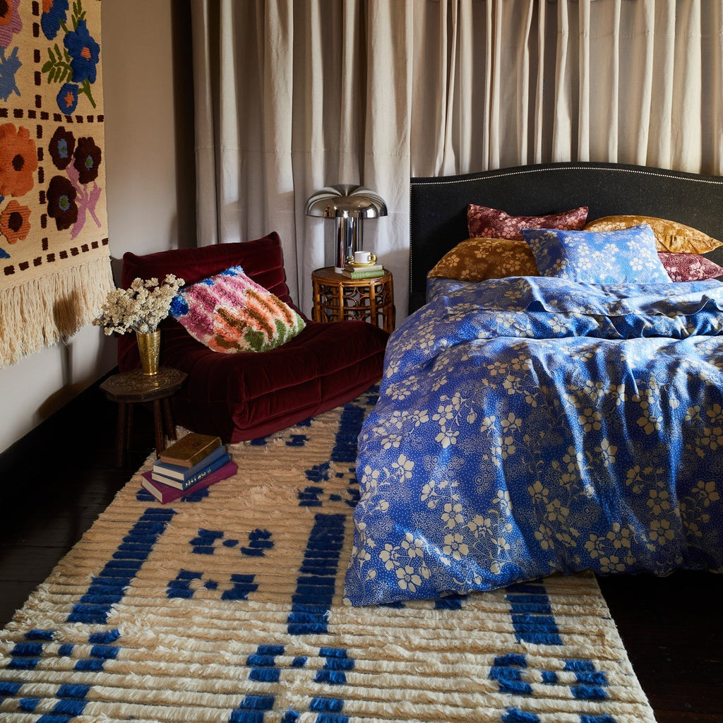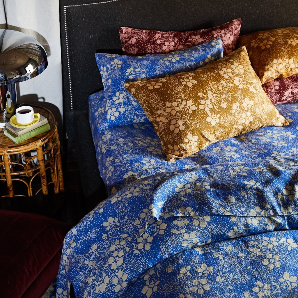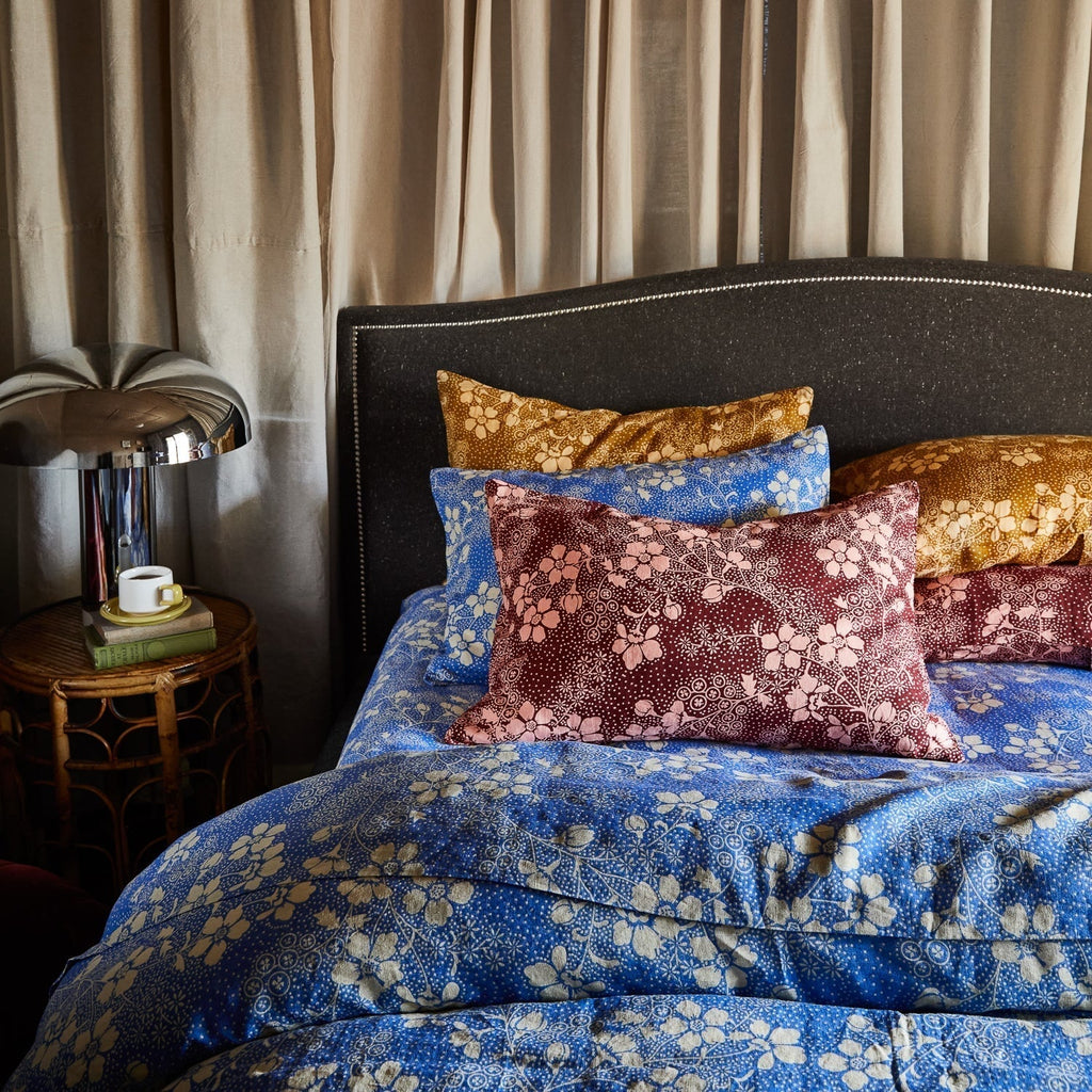 "Our Salina print is inspired by vintage batik designs and traditional dyeing techniques. The pattern unfurls in delightful blooms, covering your bed in a garden of florals and botanicals. The hand-drawn design is embedded with tiny details waiting to be discovered and cherished". – Phoebe’s Style Notes