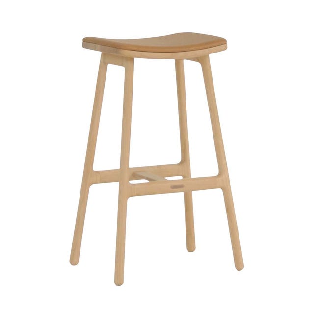 Tolv Odd Upholstered Barstool - Camel Leather - Light Oak