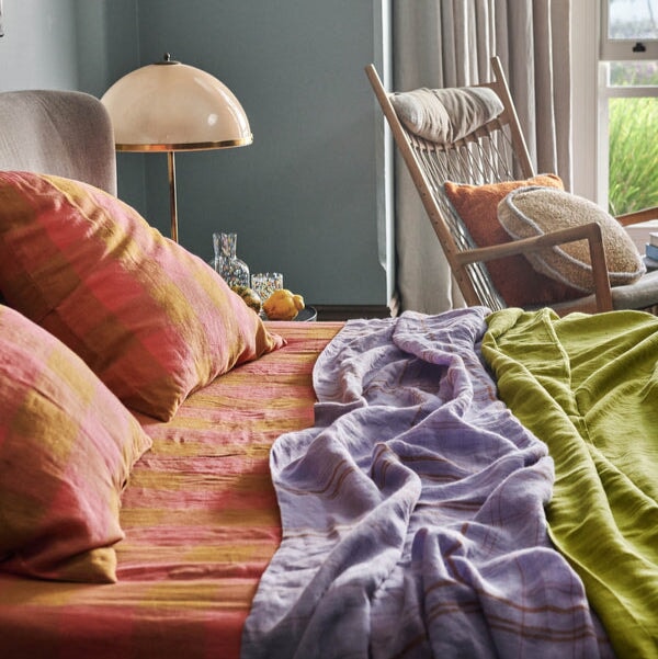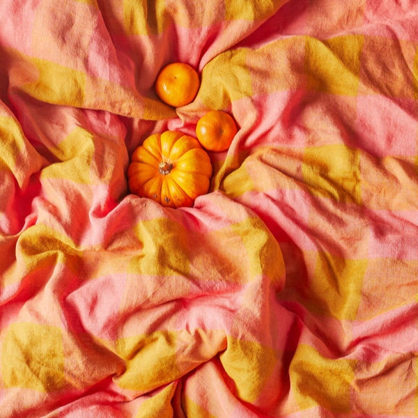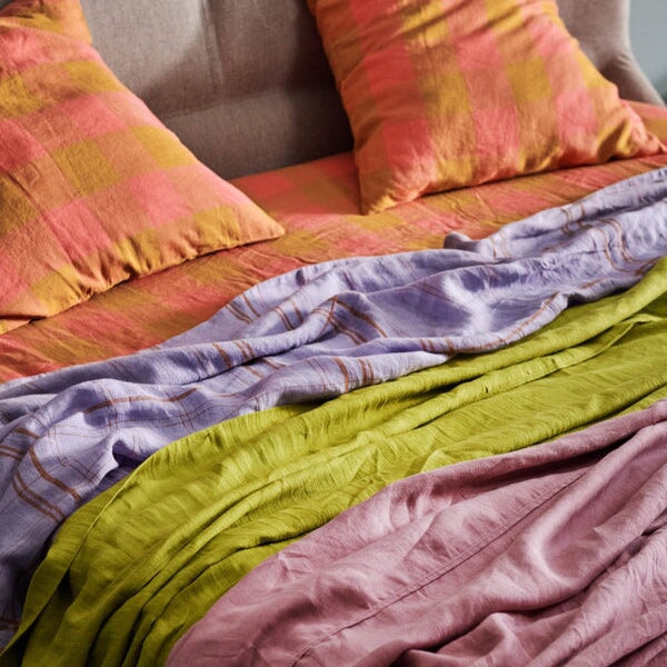Feel fresh sheet fabulous with our patterned French flax linen fitted sheets. Made for comfort and available in a coral pink and golden brown check tartan linen. Pair with matching flat sheet or mix and match within our large range of printed organic cotton, linen or velvet bedding.