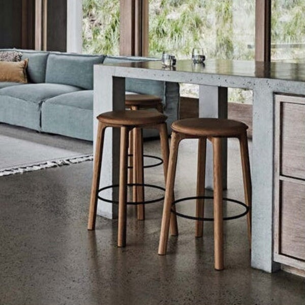 For kitchen counters the Tolv Bar Stool is an easy choice. Crafted with a generous, round seat, it is a comfortable place to sit in style.