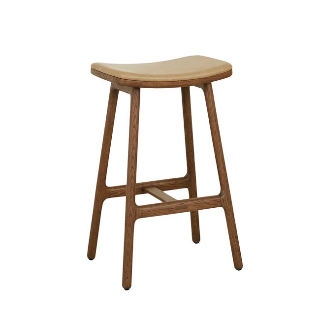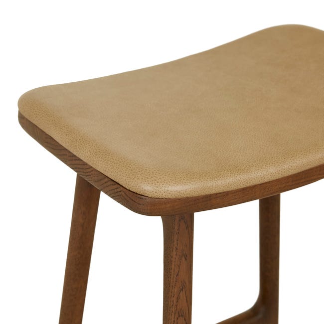 Tolv Odd Upholstered Barstool - Arena Leather - Latte Oak