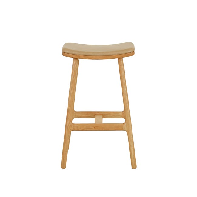 Tolv Odd Upholstered Barstool - Arena Leather - Light Oak