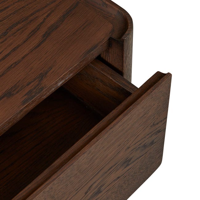 Tye in Natural Travertine and Espresso was born from a place of function and minimalism. The bedroom is a place for rest, without need for distractions and ornaments. The rounded legs keeps your shins safe, and the scooped-out top provides a safe shelf for your bedroom essentials while offering a comfortable pull for the drawer that stores your personal items. By choosing the natural travertine shelf you add an element of surprise and contrast to your sacred space.
