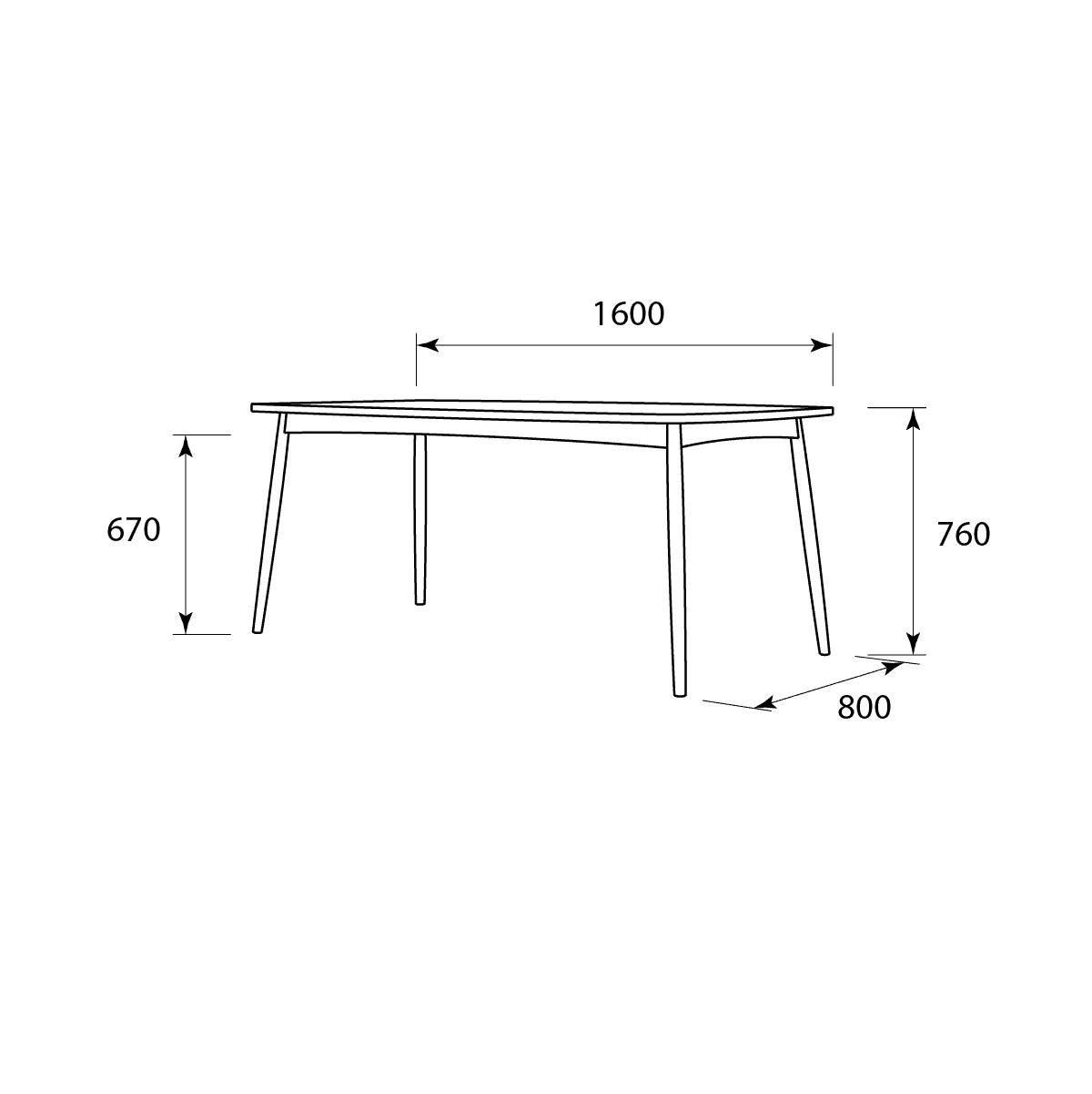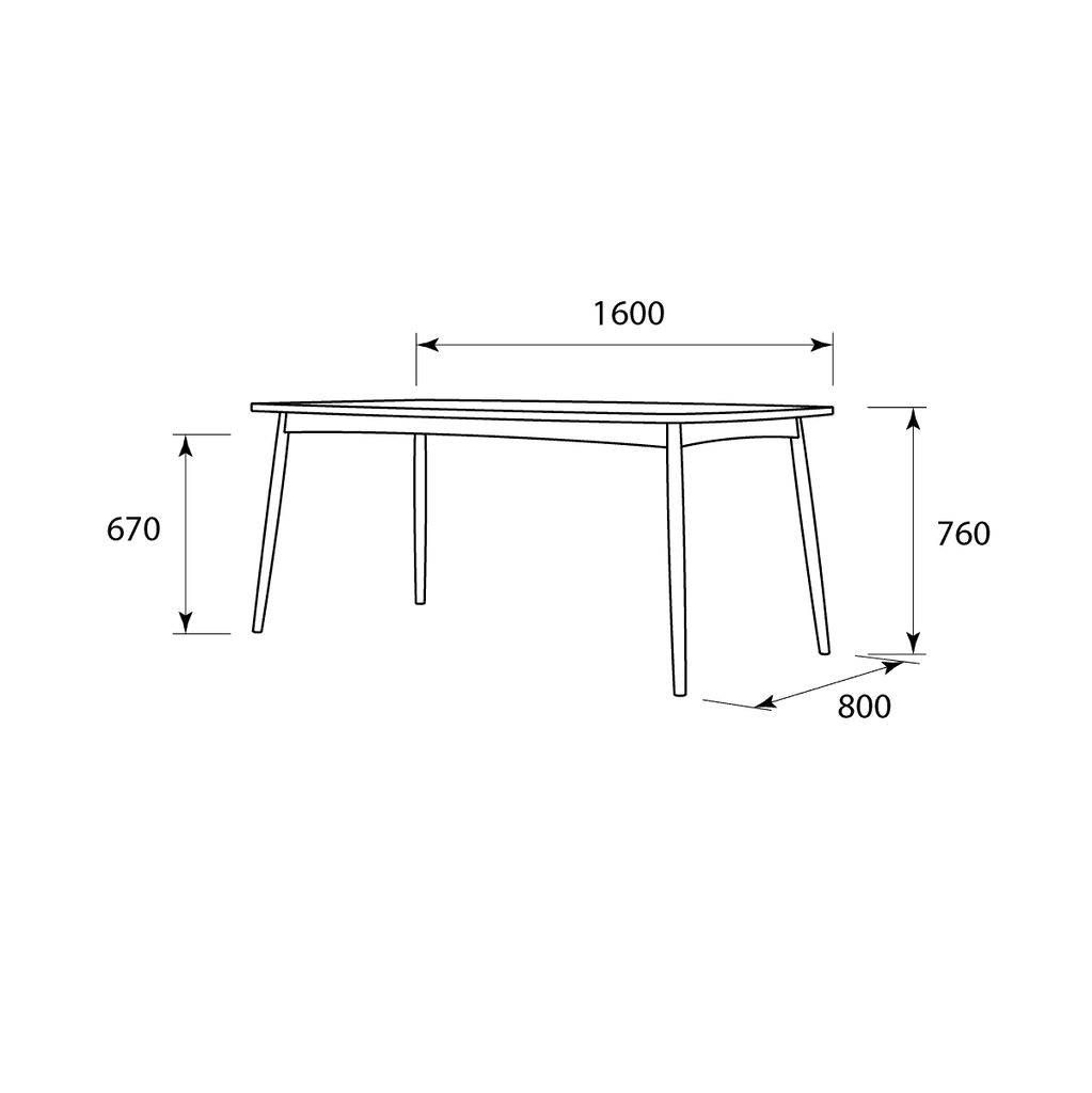 Dimensions: D=80, W=160, H=76cm