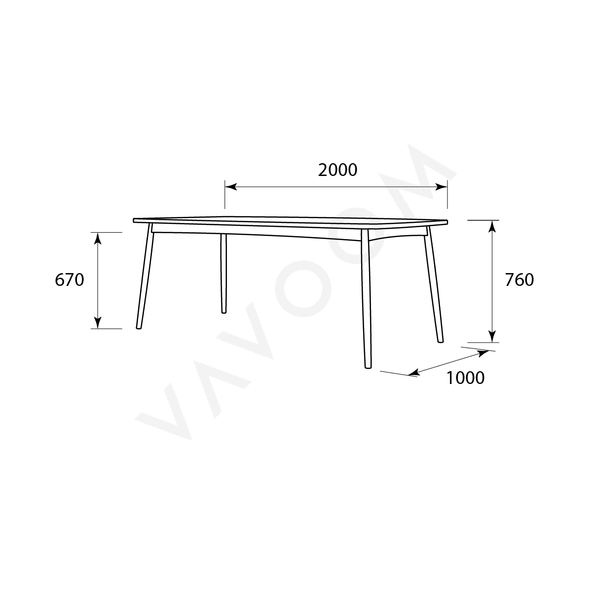 Dimensions: D=100, W=200, H=76cm