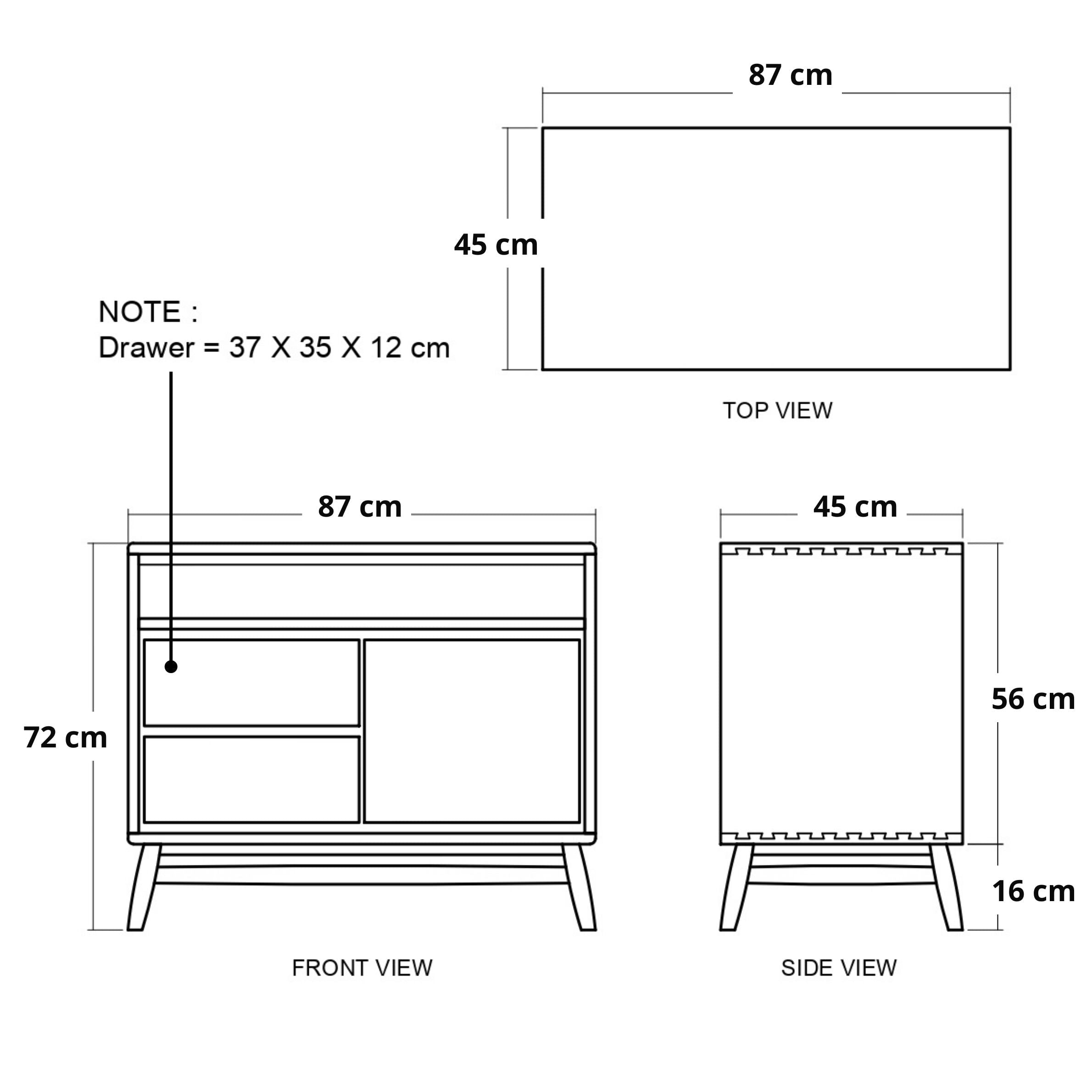 Dimensions: D=45, W=87, H=72cm