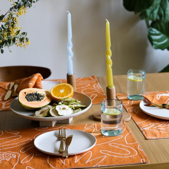 Dine in true Mosey style with our Twisted Dinner Candle set in Olive. This twisted style and high-gloss finish will add a unique touch to your next dinner party. This set pairs perfectly with our Meadow and Whitewash tableware for a tonal look or adds some contrast to our table linens in warmer tones.