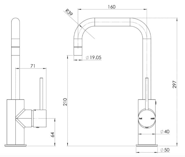 Phoenix Vivid Slimline Squareline Sink Mixer 160mm - Matte Black